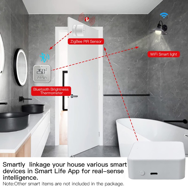 This smart gateway is the bridge that connects different Zigbee and Bluetooth devices. It plays an irreplaceable role in all products supported for ZigBee, Bluetooth. With this Zigbee and Bluetooth wireless gateway, you can add up to 100 Tuya Zigbee devices or 100 Bluetooth devices to your smartphone. Via the Smart Life / Tuya app, you can easily control the home equipment and make your life simple and beautiful.