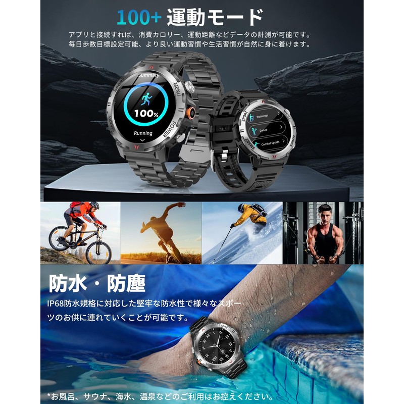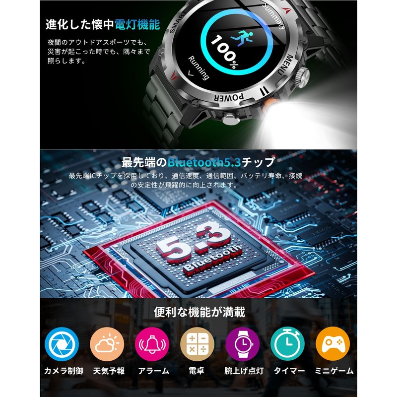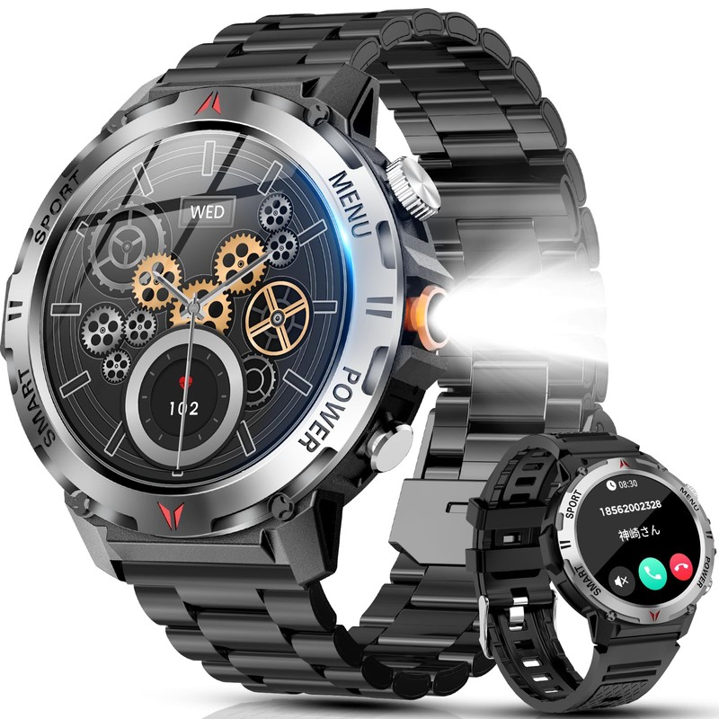 Smart Watch (2025 Improved Version), Military Standards, Flashlight, Bluetooth 5.3 Calls, LINE/Message Notification, Dustproof and Waterproof, 100+ Exercise Modes, GPS Exercise Recording, Sports