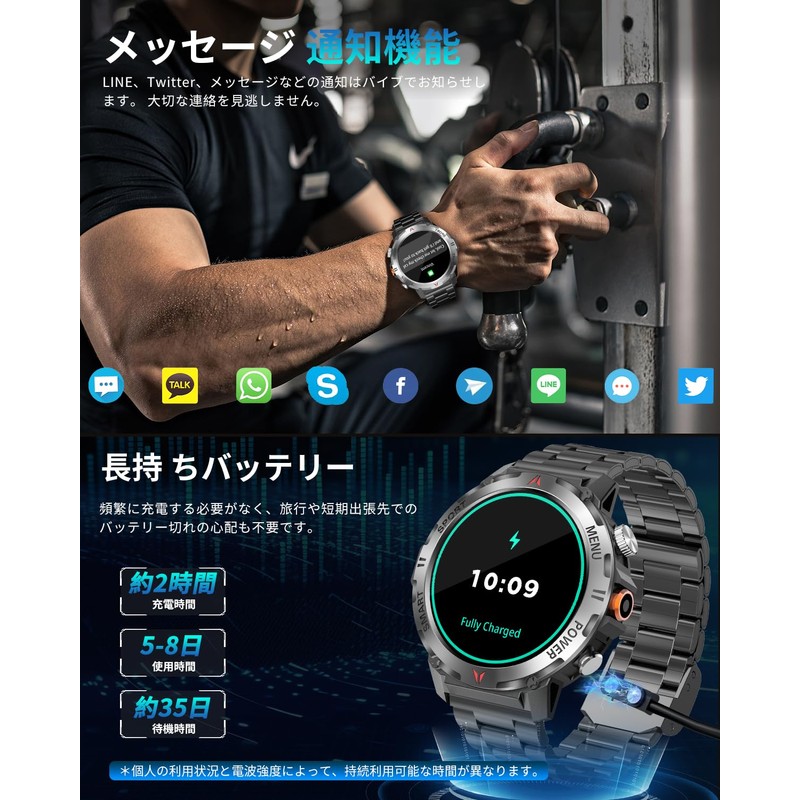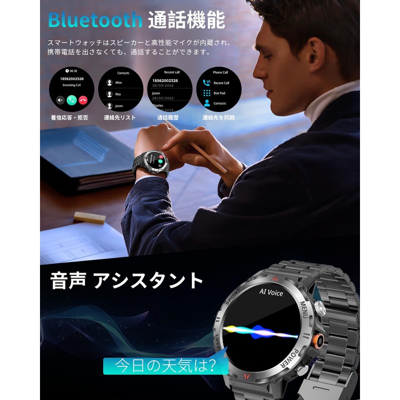 • Bluetooth 5.3 Call & Message Notification Function & Voice Assistant: This smart watch has a built-in speaker & high performance microphone, so you can make calls with your smart watch without having to take out your phone. After connecting to your smartphone, you can answer or reject an incoming call, etc. It also displays the call history and can also store call records. Free up your hands and increase your life and work efficiency. It also supports incoming calls, SMS, LINE, Twitter, Facebook, Instagram, Whatsapp, skype, Viber, Linkedin, and more. You can check all the contents without removing your smartphone. You can also delete messages. It also comes with the latest voice assistant so you can activate the voice assistant function on your smartphone, just by speaking the assistant function on your watch
