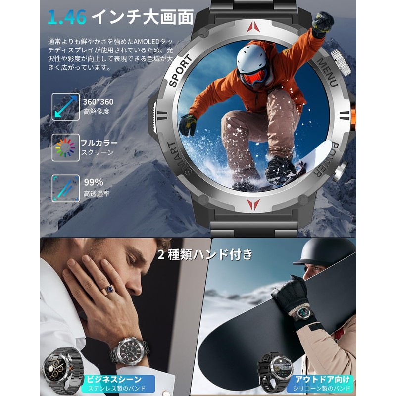 • IP68 Dustproof, Waterproof & Military Standard Smart Watch: This smart watch has an IP68 dustproof and waterproof function that is the highest standard in the industry and can be used without worrying about water or sweat. This sport watch can be used outdoors or in dust-filled manufacturing factories, it has a rugged design such as dustproof, splashproof, shockproof, high temperature and low temperature resistance, and can pass many military standard tests. It also features a 1.46-inch touch display that allows you to express beautiful colors in high definition, and a large screen with excellent visibility, allowing you to see the image quality more clearly and the text is displayed on a larger screen. Provides unprecedented comfort and superior maneuverability. Please refrain from using in baths, saunas, sea water, hot springs, etc