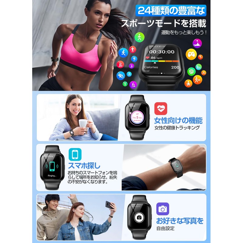 - 1.85-inch HD Large Screen / Smooth Operation: Uses a large 1.85-inch high-resolution screen with a resolution of 240 x 284 pixels. The image quality is delicate, clear, and the color is bright, and the field of view is more natural. Our smart watch uses a unique operating system to achieve full functionality and smooth operation. Incoming calls, Line/SMS/Twitter messages, app notifications, and more. In addition, the smart watch has the advantage of connecting both iPhone and Android smartphone. It also has a complete monitoring function to record an activity monitor, and is recommended for those who want a smart watch that helps manage their daily exercise habits. Equipped with an arm lift and light feature, so you can easily know the time and step data. At the same time, you can change the dial with a full range of personalities from the app, and use your smartphone with a single touch