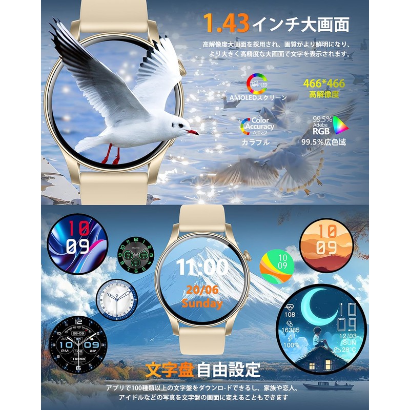 Smart Watch, 2025, Round Shape, 1.43 Inches, AMOLED, High Definition Screen, 2 Types of Bands, Call Function, LINE Message Notifications, 100+ Exercise Modes, Exercise Recording, Pedometer, Activity