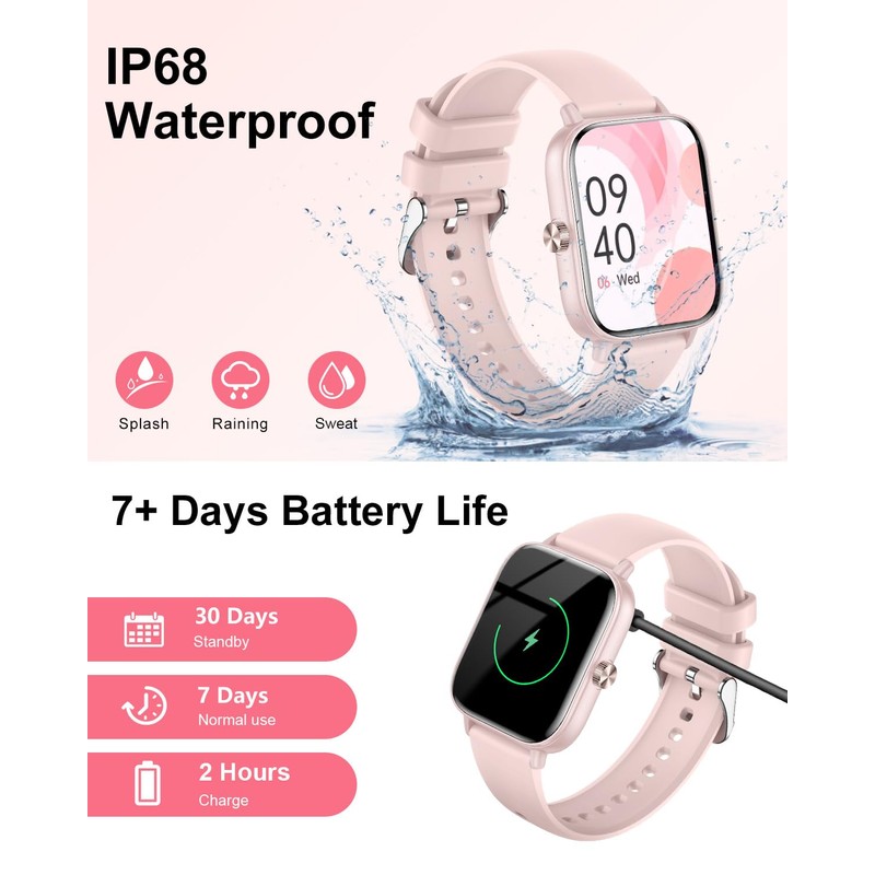 - 【Multi-Functional Beautiful Gift】Smartwatch for Android iOS phones with multiple functions such as find phone, weather, music/camera control, sedentary / drinking reminder, alarm, stopwatch, etc. IP68 waterproof watch can resist sweat, rain or hand washing (not suitable for bathing, swimming), watch for women with battery capacity of 250 mAh can be used for 2-7 days of operation (depending on personal use), not only for self-use, but also the the best holiday gift for your family and friends