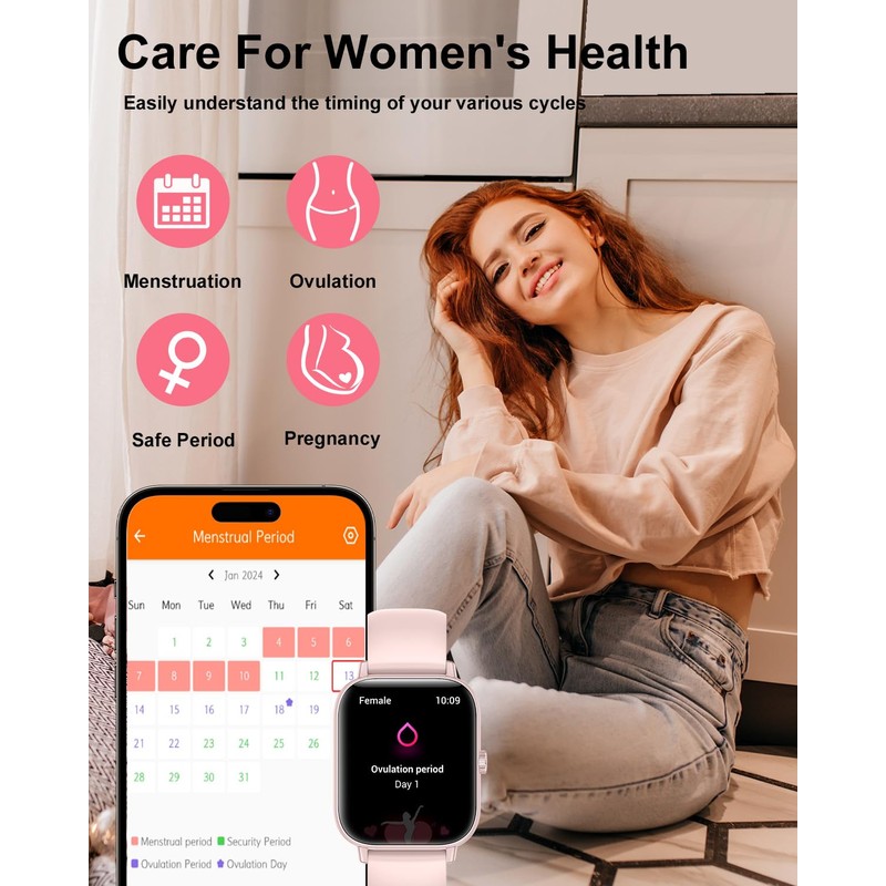 - 【Make/Answer Calls & Read Message】Smart watches for women have built-in microphone and speaker, after connecting with your phone via Bluetooth, you can make/answer calls directly from your smartwatch by synchronizing your contact list or dialing manually. Your messages can be synchronized and displayed on the smartwatch, such as SMS, Facebook, X, WhatsApp, etc. You can easily get real-time notifications without taking out your phone, and you no longer need to worry about missing important calls and messages. Watch also features AI voice assistant function for your convenience