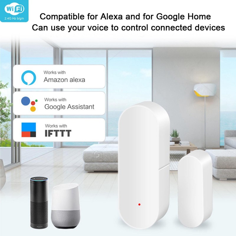 1、Can enjoy your smart life. When you leave home, it will send you a notification after sensing the open or close of the door/window. It is convenient for you to find the intruder in time. 2、You can share your device with your family, and track the history of sensor activity 3、Compatible for Alexa and for Google Home. For Google Home can control connected devices, and for Alexa can only control the turning on or off of the device. Can also perform automated control with other smart devices that are compatible with Smart Life or IFTTT. 4、It is convenient for you to detect doors, window, cabinets, drawers or any place to be notified when opening or closing. 5、Easy to install, no complicated installation tools required. Sensors can be mounted using double‑sided tape in just a few steps. the app Smart Life can be downloaded from GooglePlay or the Application Store to add devices, more convenient to detect the status of the door/window.