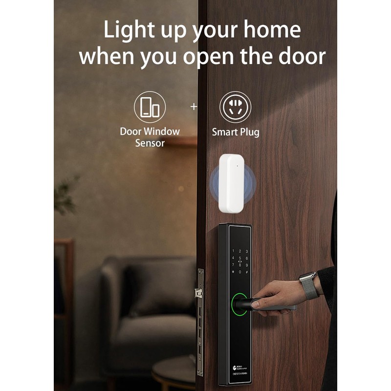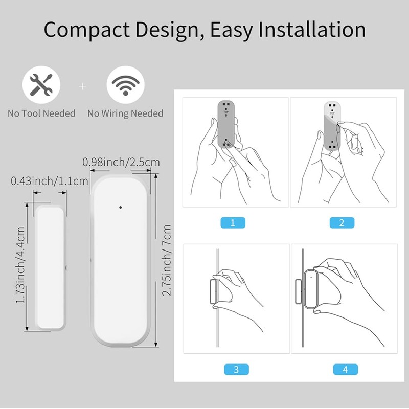 - Wireless Connectivity: This smart door sensor connects to your WiFi network, enabling you to receive app notifications when doors or windows are opened or closed.