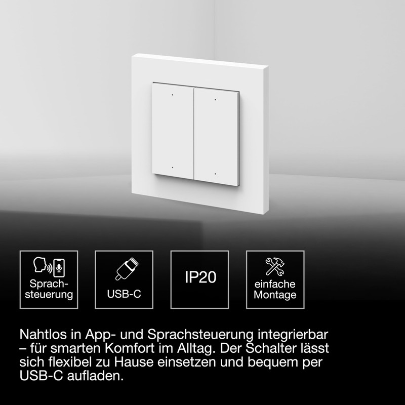 - Button functions can be easily configured in the app to control product features, automations and routines
