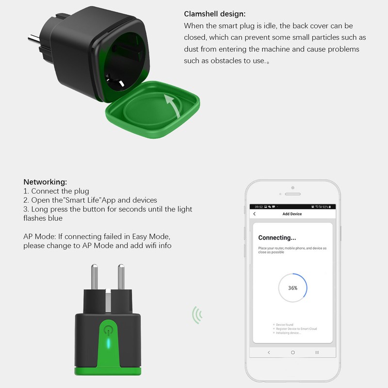 1、Universal Socket: Conforms to standard design, the 100V‑240V socket is highly compatible with the plugs of varied electrical appliances. 2、Easy for Control: Supports mobile phone remote control, switching, countdown and timing, the WiFi socket will largely improve the overall safety. 3、Better Indicator: Equipped with concealed indicator light which has gentle lighting, the timing plug socket is very easy to check the work status. 4、Great Back Cover: Moreover, there is a back cover on the smart socket, effectively preventing dust and water from entering, very safe and reliable. 5、Wide Application: The IP44 waterproof socket can be widely applied to home, factory, office and other places, providing you with stable power supply.
