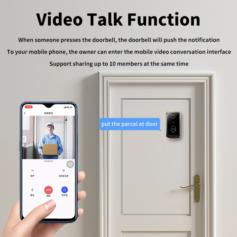 1、720P HD Night Vision: The doorbell camera can provide real time and clear 720p video. The built in infrared night light can not only automatically adjust according to the ambient brightness, but also intelligently and automatically sense the illumination of the environment and switch to the night vision mode. 2、90 Degree Wide Angle: With a 90 degree wide angle view, Video doorbell camera is very suitable for day and night, allowing your view to cover all angles without missing any details. 3、Two Way Call: The built in microphone and powerful remote connected speakers enable you to communicate clearly with visitors in real time. The notification tone provided can be set in any room to ensure that you are not missing any visitors. 4、Motion Detection: The doorbell camera is equipped with an intelligent mobile sensor, which can intelligently detect the modularity of human movement, and then accurately and instantly push necessary reminder notifications through the APP. 5、Low Power Consumption: With 3600mah rechargeable battery, the doorbell camera has low power consumption, which is more eco friendly and energy saving.
