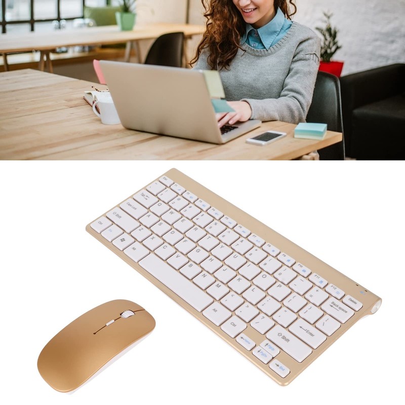 Smart Wireless Keyboard Mouse Kit, Waterproof, Power Saving, Compact Keyboard Mouse Set for Office (Gold)
