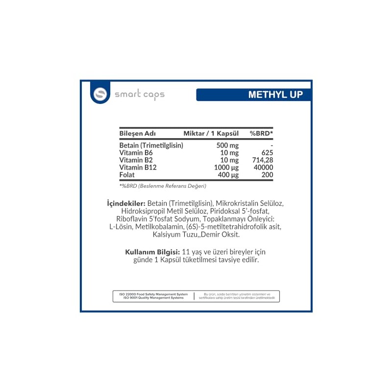 Smartcaps Methylup ( Active B Comlex + TMG ) 60 Kapsül