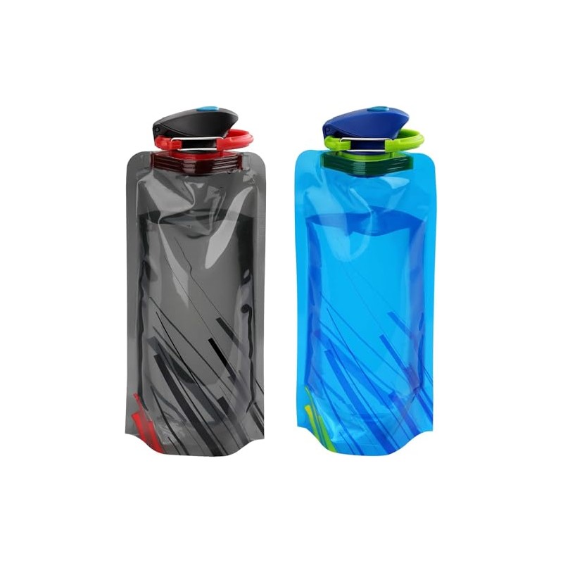 smartelf Foldable Water Bottle, Pack of 2, 700 ml, Reusable Water Bottle, Foldable, Portable Collapsible Water Bag, Foldable Flexible Water Bottle for Hiking (Black + Blue)