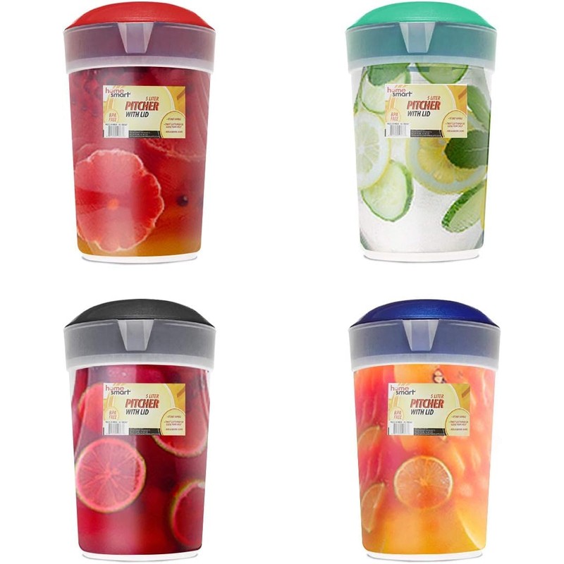 Smarthome Water Pitcher, 5 Liters, Tea Pitcher with Lid and Spout, BPA-FREE, Iced Tea Pitcher, 1.3 Gallon, 4 Plastic Pitcher (Black, Red, Green, Blue)