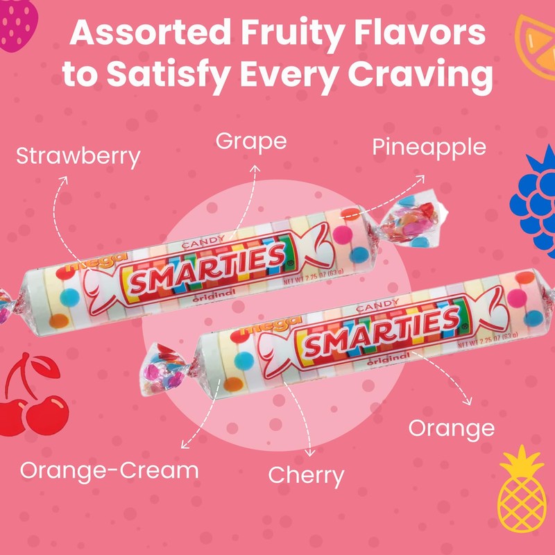 Smarties Candy Mega Rolls - Gluten & Vegan Free - Assorted Flavor Treat - Peanut Free Plant Derived Ingredients - Ideal Halloween Candy - Individually Wrapped Bulk Candy - 54oz Box (Pack of 1)