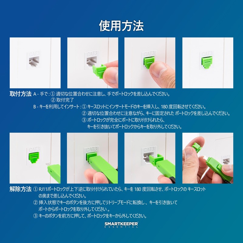 • SmartKeeper ESSENTIAL RJ11 Port Lock is a physical cybersecurity lock that prevents unauthorized access to devices by physically blocking open RJ11 ports