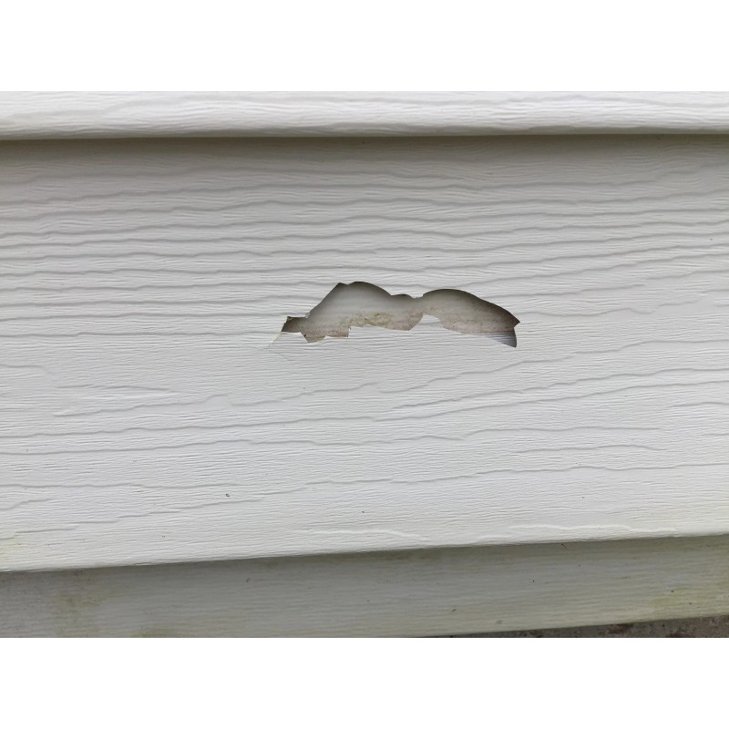 Make your damaged Vinyl Siding look Brand New! It's Quick and Easy! Purchase includes TEN large patches: Each are 8" x 6" in size. Instructions included. PHOTO 1: BEFORE REPAIR PHOTO 2: AFTER REPAIR *Super Durable 4.7 mil vinyl patches *UV Resistant & designed to withstand all outdoor temperatures *Pressure-activated adhesive backing *Simply paint (spray or brush it on) and cut to size *Retains your siding texture and woodgrain Patches are white and easily painted to match your vinyl color. After paint dries simply cut with scissors to the desired size, then remove adhesive backing and pressure apply. |