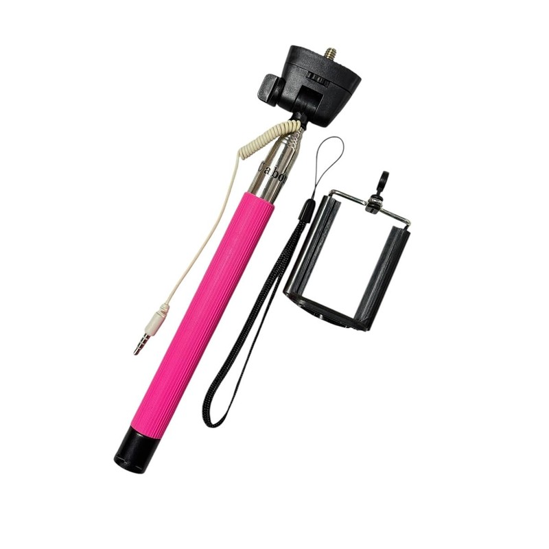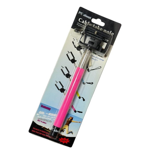 Smartphone selfie stick, just plug it into the earphone jack. (One-touch selfie stick/pink)