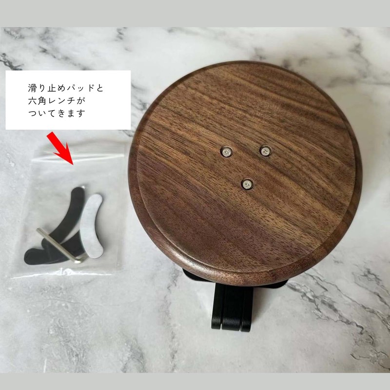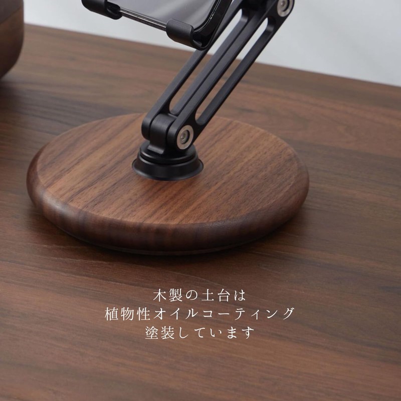 Walnut and movable smartphone stand with 3 axis and 360° rotation function, this wooden smartphone stand can be installed in a position or orientation that is easy to use. It can be used while charging, so it can also be used at work desk.