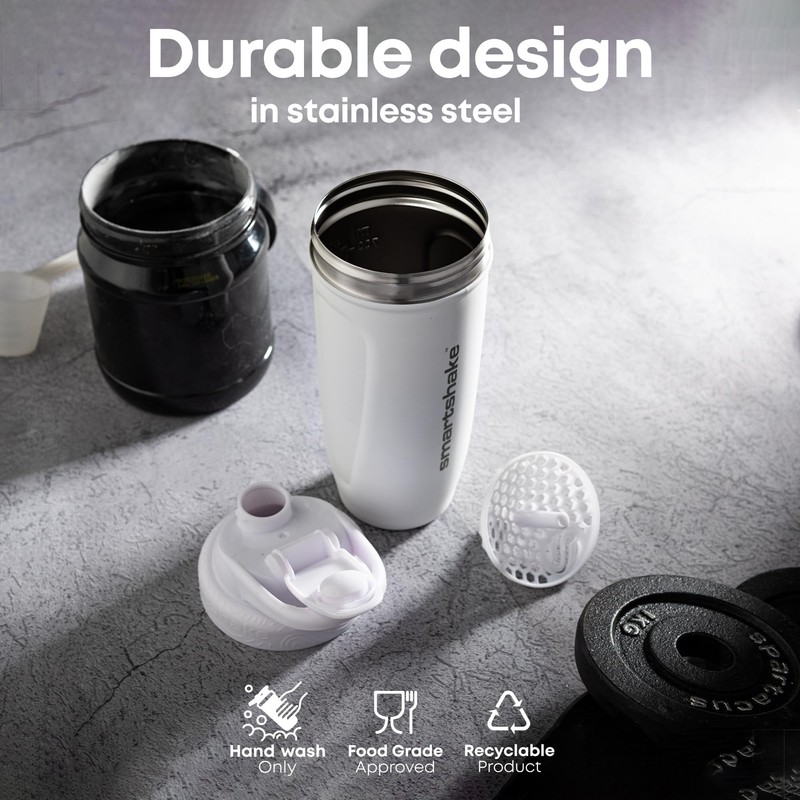- REFORCE de SmartShake es el shaker más resistente de la familia; hecho con acero inoxidable de grado alimenticio ultra ligero de una sola capa, el material más higiénico en el mercado Tecnología diseñada en Suecia y más de 25 millones de shakers vendidos en el mundo.