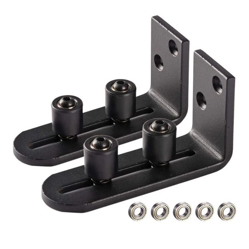 - ALL WHEELS EQUIP WITH 2 BALL BEARINGS -Bearings provides a very quite and smooth glide as the door opens and closes,be aware of other no bearing barn door stoppers with poor functionality which may hurt your door.Dual rollers adjustable to fit to a thinner doorboard