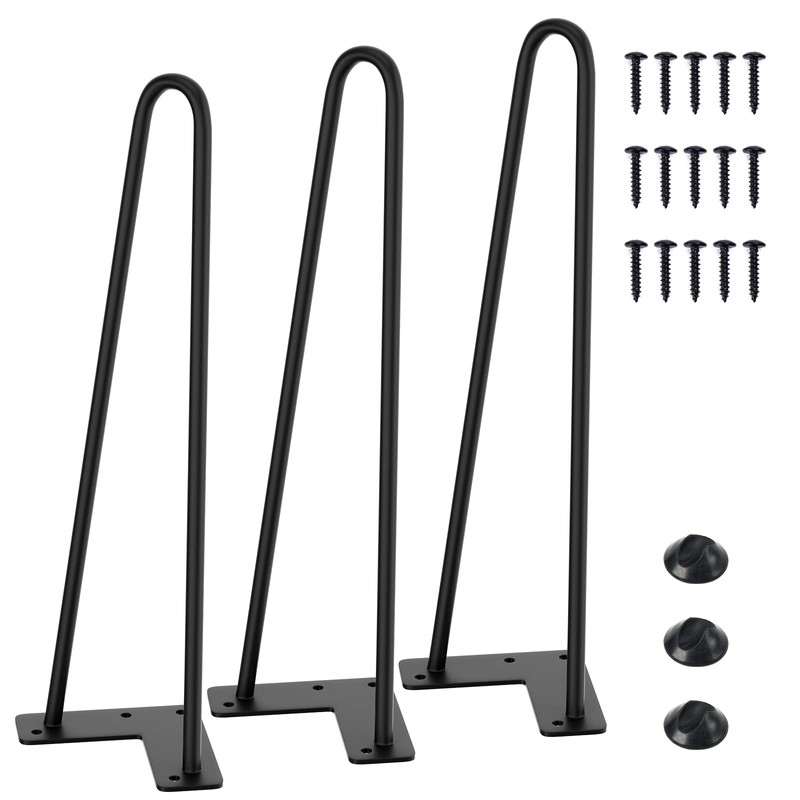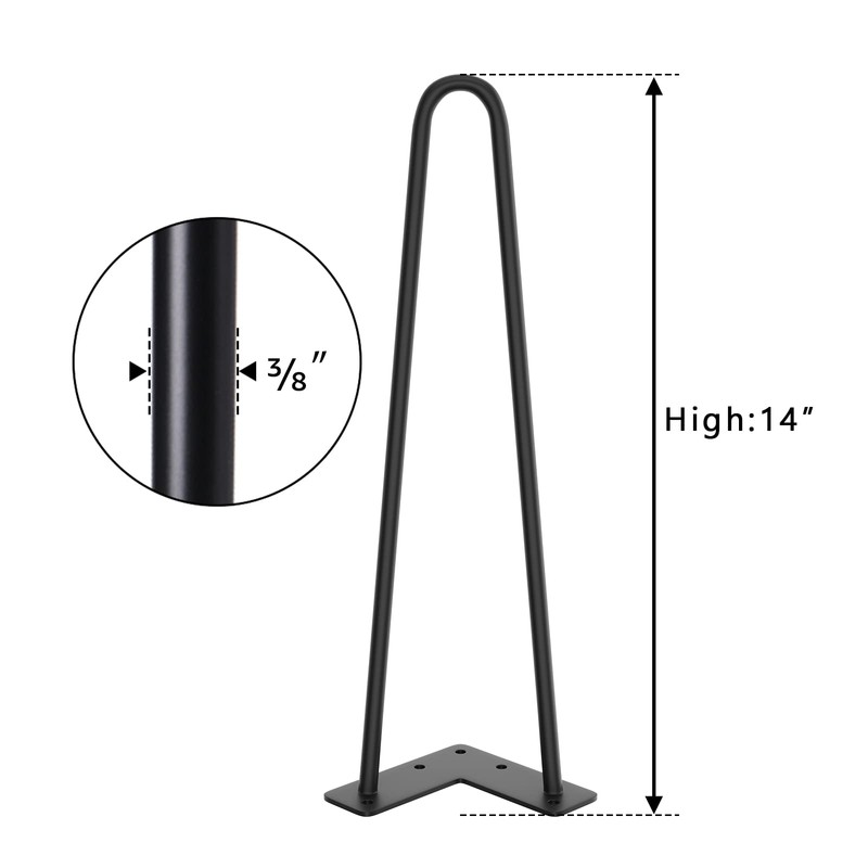 - Made of Heavy Duty Solid Steel: These Hairpin legs are made of 3/8'' cold Rolled sturdy steel. The heavy-duty legs come with a Satin Black powder-coated finish and will support up to 300 lbs.
