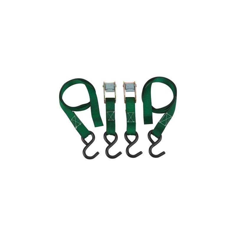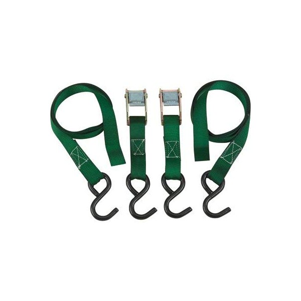 • GREEN MEANS STANDARD DUTY — Super strong, non-marring coated steel S-hooks with a break strength of 1,200lbs; These 6 ft ratchet straps have a safe work load of 400lbs, perfect for lighter loads hauled in a pick-up truck or on a small trailer