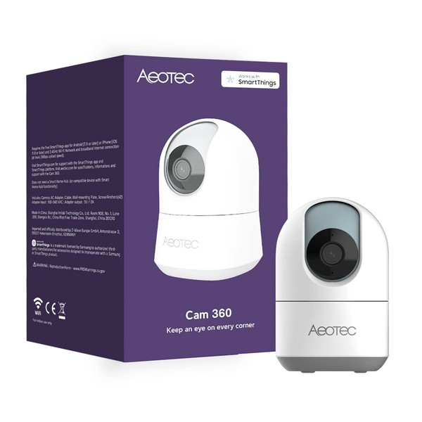 SmartThings Aeotec WiFi IP Camera Security Camera 1080p Full HD Resolution Night Vision 360° Person Detection Motion Tracking Panoramic View 2-Way Audio