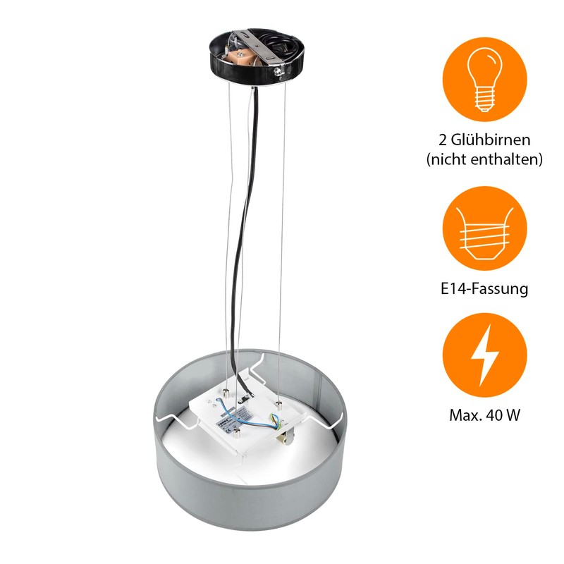 Smartwares 10.004.65 Ceiling Light / Textile Shade, Diameter 30 cm, 2x E14, Grey