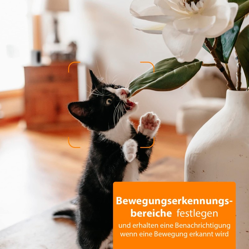 - Die Privacy Sicherheitskamera bietet einen Betrachtungswinkel von 130°. Sie können Überwachungsbereiche auswählen, die bevorzugt werden sollen. Ein eingebauter Bewegungsmelder ermöglicht es der Kamera, in der App und auf einer microSD-Karte (nicht im Lieferumfang enthalten) aufzunehmen, sobald eine Bewegung erkannt wird. Passen Sie die Empfindlichkeit an, um Fehlalarme zu reduzieren.