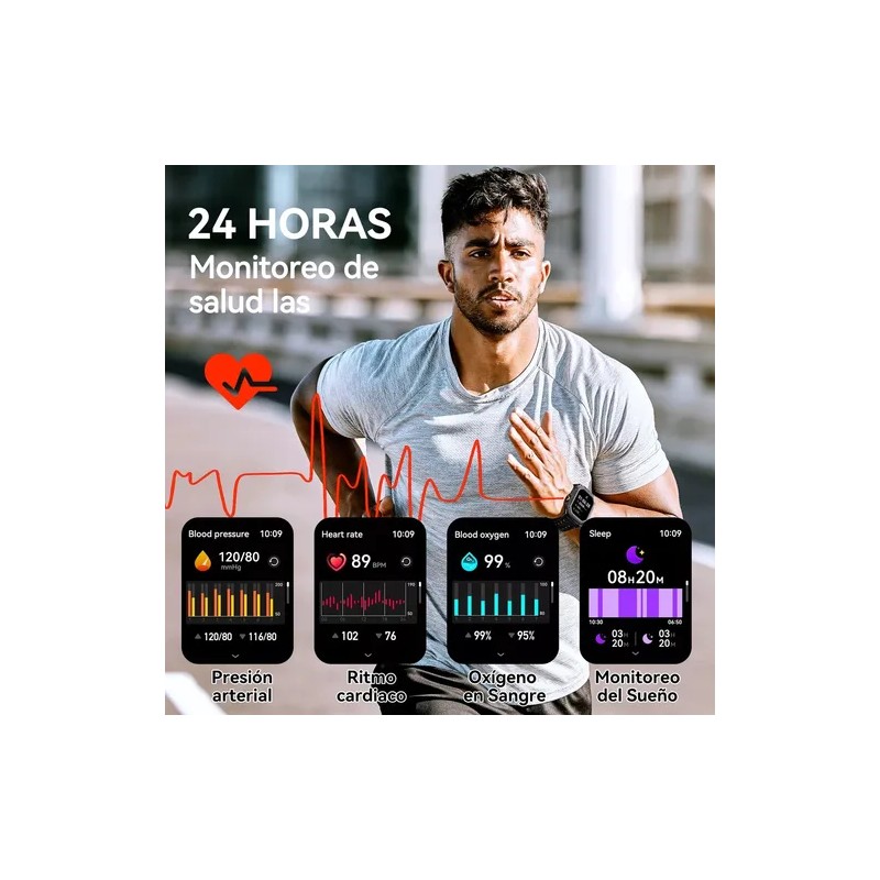 Calorías, Clima, Distancia, Llamadas bluetooth, Monitoreo de oxígeno en sangre, Monitoreo de sueño, Pasos, entre otros, Monitoreo de estrés, monitoreo de presión arterial, monitoreo de ritmo cardíaco, Más de 100 modos deportivos, registros de actividad