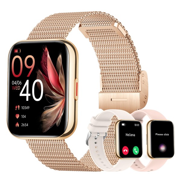Smartwatch for Women, Calls and Answer/WhatsApp/Voice Assistant, 1.85 Inch Digital Watch Fitness Tracker with Heart Rate Monitor/Sleep Monitor/Pedometer, 110+ Sports Smart Watch Android iOS Gold