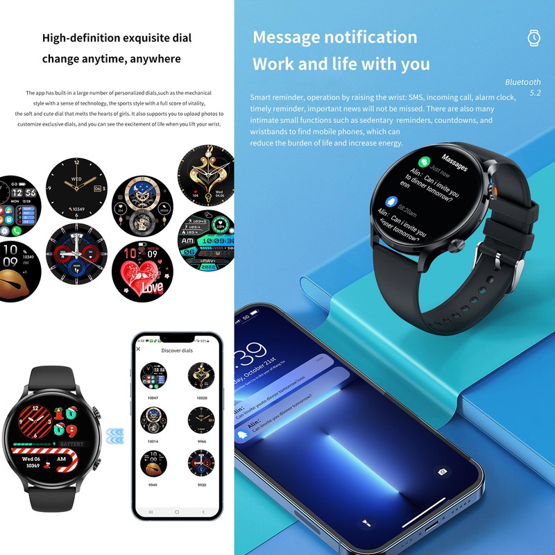 1: Anrufen und annehmen: Die Smartwatch herren verwendet die neueste Bluetooth 5.2-Technologie, die Verbindung ist schnell und stabil. Sie können direkt am Handgelenk wählen und Freisprechen unterstützen. Neben der Kontaktsynchronisierung unterstützt es auch den Empfang von SMS- und SNS-Benachrichtigungen (WhatsApp, Facebook, Messenger usw).