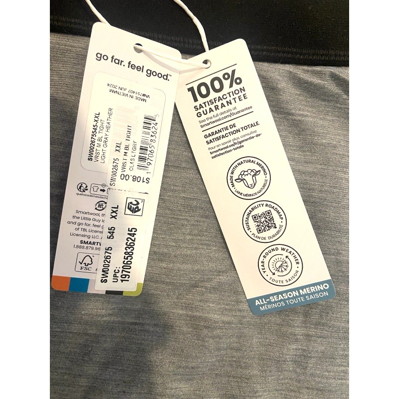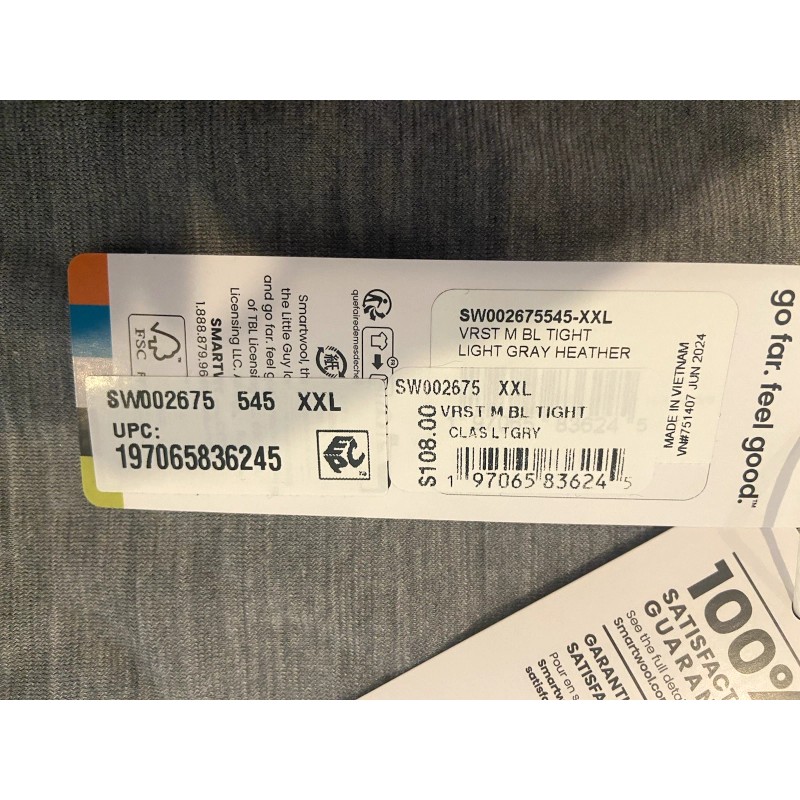 SmartWool NEW Smartwool VRST X Men's Base Layer Tights Merino Wool Gray Size XXL 2XL