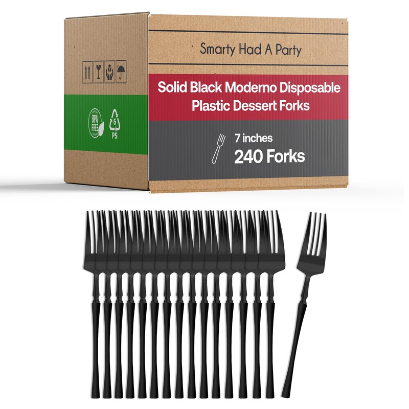 Smarty Had A Party 240 Solid Black Moderno Disposable Plastic Dessert Forks Heavy Duty Plastic Fork Forks Plastic Disposable Black
