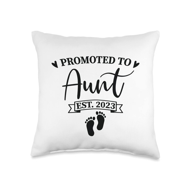 Smarty Pants Designs Promoted est. 2023, New Aunt Announcement Gift Throw Pillow, 16x16, Multicolor