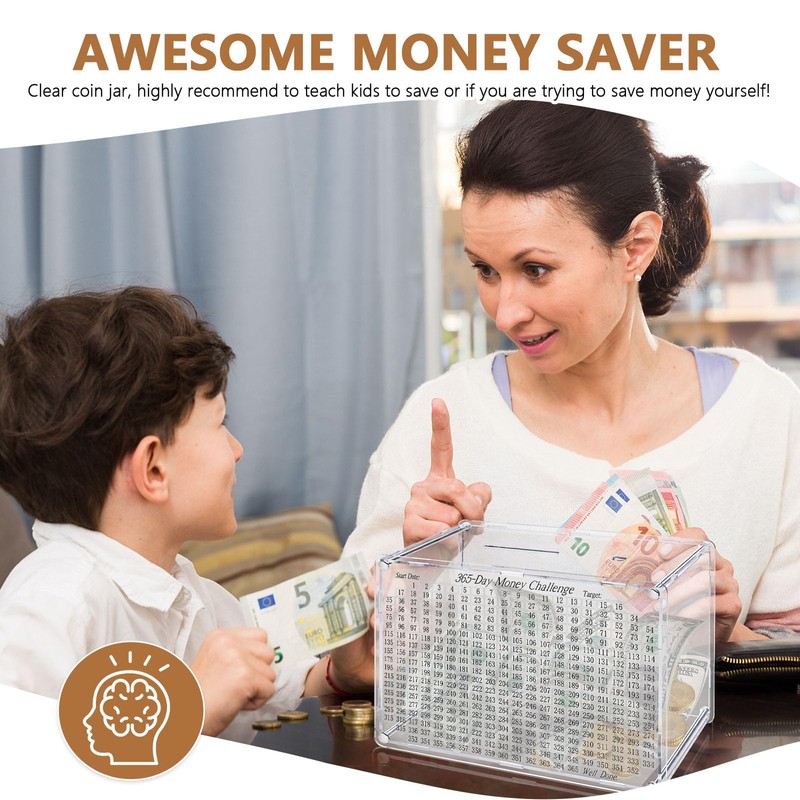 - Clear Savings Goal: The money box has clear stickers of numbers and days to visualize your savings progress. You can use the money bank to manage your money by considering your savings as travel money, wedding fund, etc.