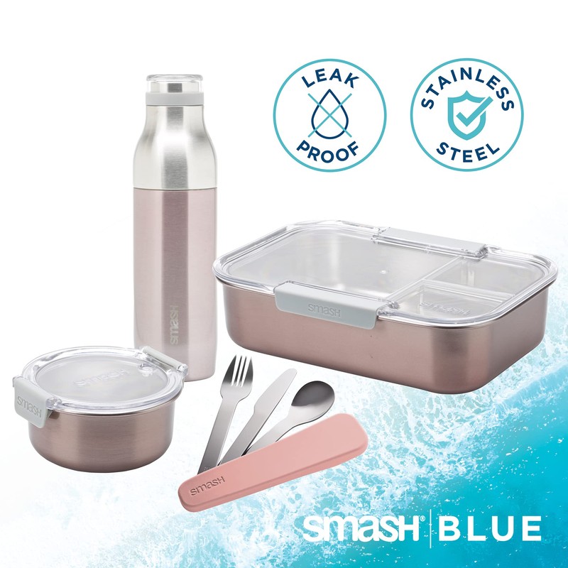 Smash Eco-friendly Bento 8-Piece Lunch Kit - Blush color - Box with 3 compartments, Snack Box, 16.9 fl oz Bottle, 3 piece Cutlery