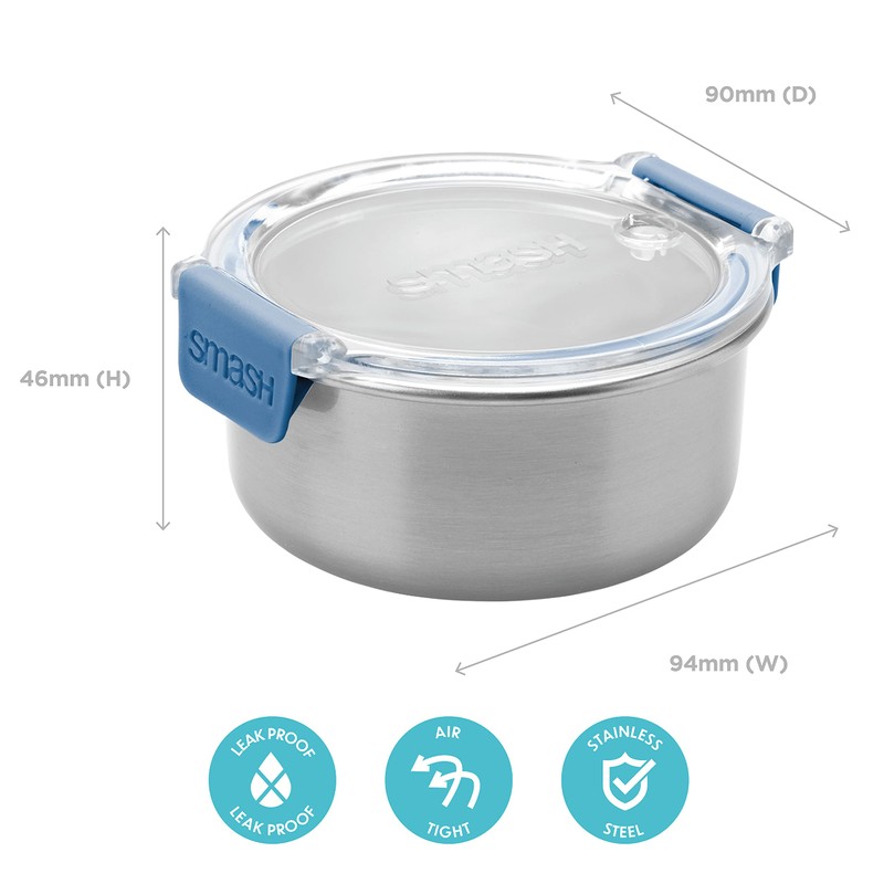 Smash Stainless Steel Snack Pot, Blue, 200 ml Capacity (Pack of 2)