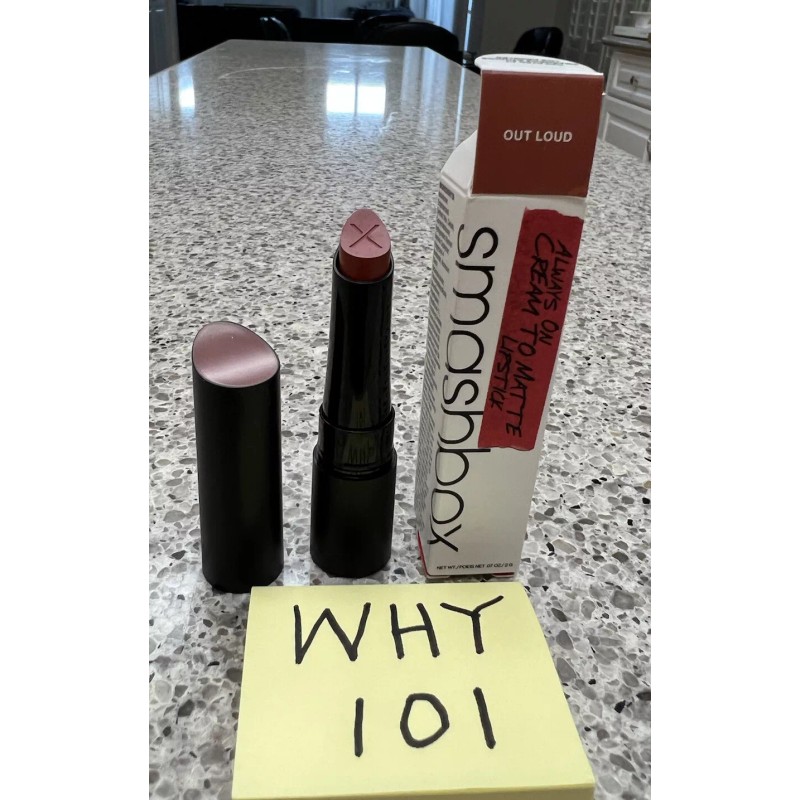 SMASHBOX Always On Cream To Matte Lipstick OUT LOUD (Burnt Orange) .07oz/2G FULL SZ SEALED RET$27. LASTS ALL DAY. A non-drying, transfer-resistant, waterproof lipstick that glides on creamy and sets matte.