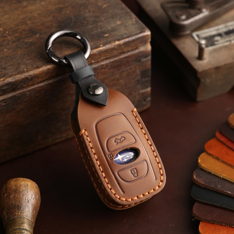 [smasol] Subaru Key Case, Cross Trek Key Cover, Forester Key Cover, Revogue Impreza Key Case, Genuine Leather, 3 Buttons Subaru Levorg Forester Key Case, Genuine Leather / Brown