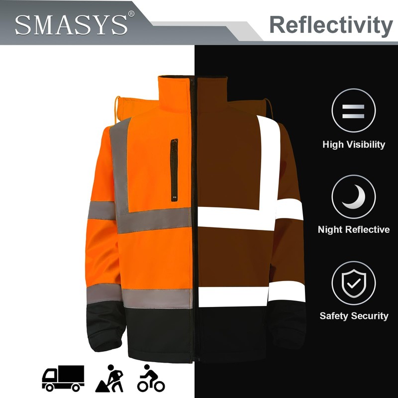 - 【MATERIAL】 The reflective softshell jacket is made of 98% polyester fiber and 2% elastic material on the outer layer, with a Fleece material inner layer. Additionally, this safety softshell jacket features windproof design elements. Wearing this reflective softshell safety jacket provides unparalleled warmth and comfortable.