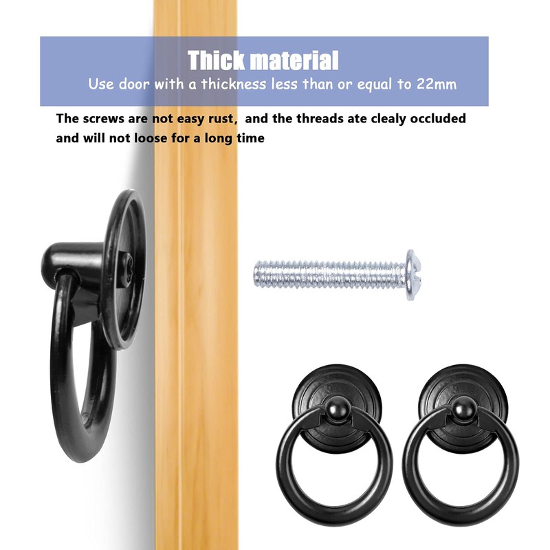 - Material: pull ring handles are made of zinc alloy, robust and corrosion resistant. Its surface is electroplated and painted black, smooth and even. Durable door knobs for long-term use.