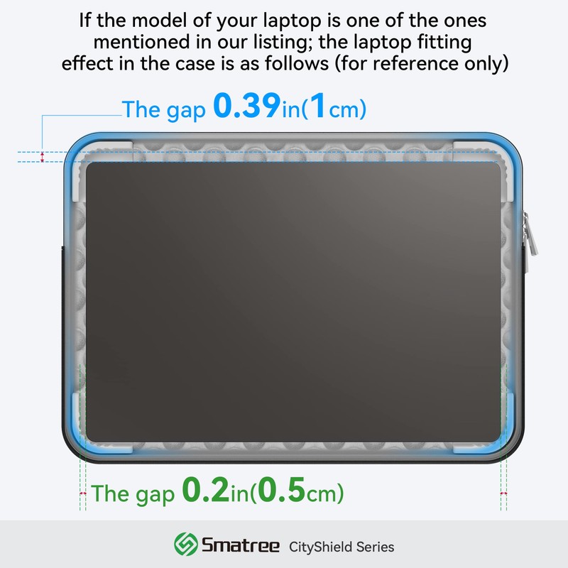 - Model No.: MC03; Series Name: CityShield; External dimensions of the case: 45.5x34.2x8 cm (17.9x13.4x3.1 inch), internal dimensions of the case: 41.5x31x2 cm (16.3x12.2x0.78 inch). Weight: 1270g