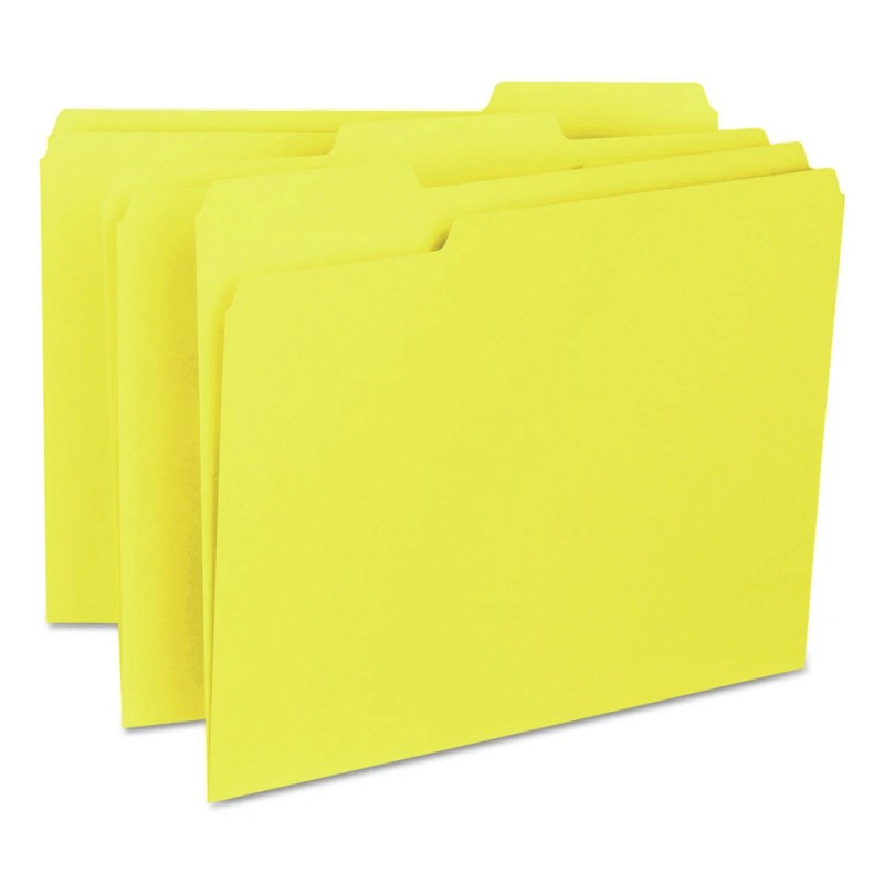 - (100/Box) 1/3-Cut Tabs Assorted Letter Size 0.75 in. Expansion Interior File Folders - Yellow - 10271