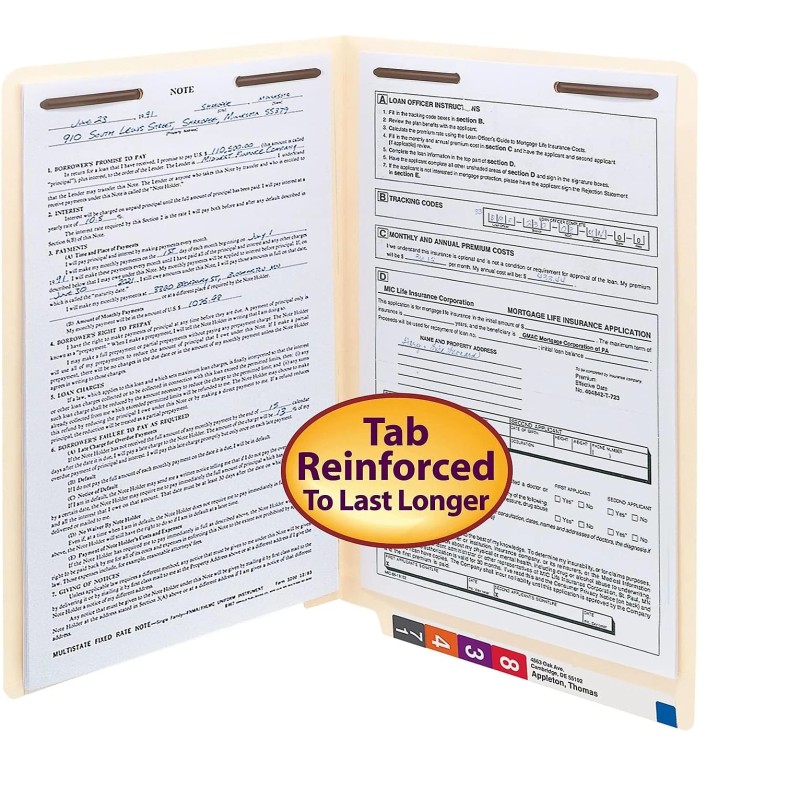 - Shelf-Master folders feature a double-thick tab for extra strength and long-lasting durability