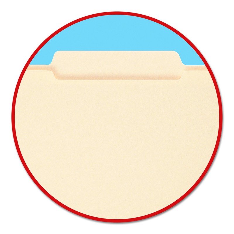 To spot files more easily, choose guide-height tabs (1/2" higher than standard tabs). Reinforced 2-ply tab provides extra durability and lasts longer than standard file folders. Great for those files that are frequently handled. Added tab strength saves you money on replacement folders! Choose one tab position for straight-line filing, which speeds retrieval time. Each folder is scored to expand 3/4" and provides a perfect solution for everyday filing needs. Contains 10% recycled content and 10% post-consumer material.