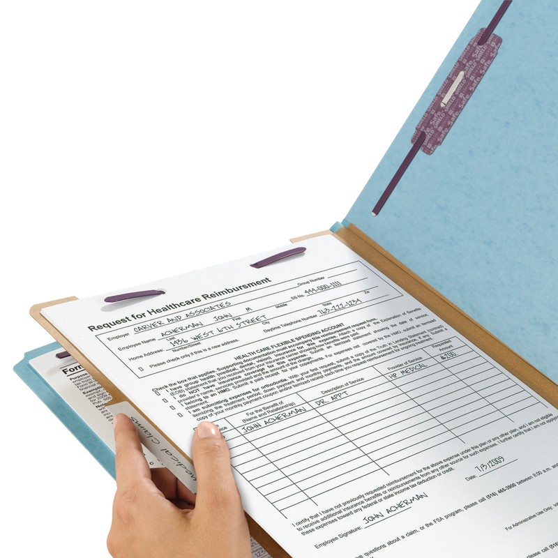 Minimize the time you spend searching for documents and increase the efficiency of your filing system. Smead's Pressboard Classification File Folders with SafeSHIELD Fasteners make it easy to organize your critical information by providing 4, 6, 8 different filing surfaces that can be used to separate your documents in subcategories and keep them in proper sequence. Purposefully designed to provide a solution for the most common fastener issues, our Pressboard Classification File Folders feature SafeSHIELD Coated Fasteners that help you avoid hand injuries, ripped papers and excessive fastener crinkling. To ensure you have instant access to your important papers and nothing gets misplaced, each legal size top tab classification file folder in this 10-pack includes 1 sturdy divider and SafeSHIELD Fasteners on all 4 filing surfaces. The 2/5-cut tab in right of center position is compatible with our Viewables Multipurpose Labels (64915 - sold separately) and the 2" expanding spine made of tear resistant material offers greater storage capacity for bulky projects. • A Rich Heritage of Innovation and Quality. A world-leading provider of solutions for efficient document management, Smead is a woman-owned company well-known for its high quality, environmentally responsible products and innovative organizational systems. For more than a century, Smead has been committed to one purpose: Keeping You Organized!