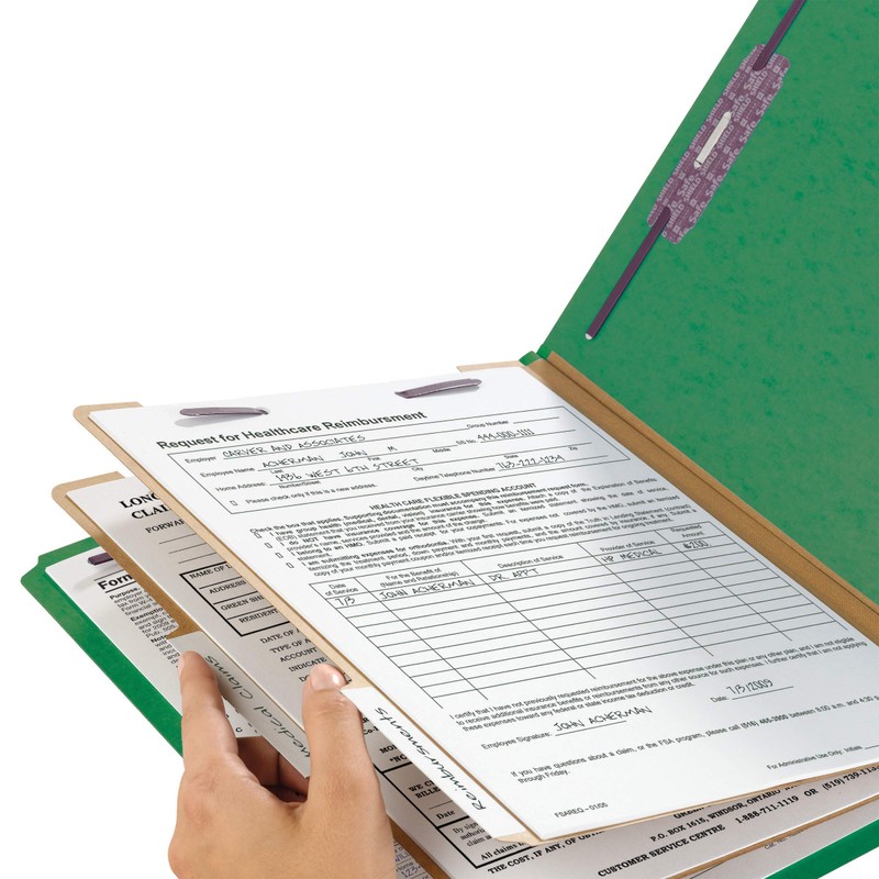 Smead Pressboard Classification File Folder with SafeSHIELD Fasteners, 2 Dividers, 2" Expansion, Letter Size, Green, 10 per Box (14033)