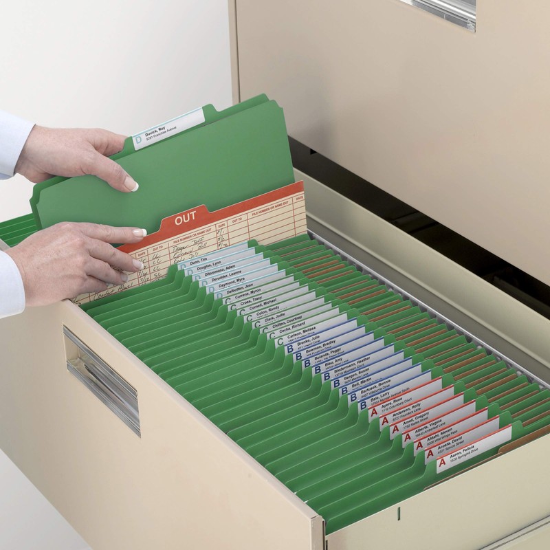 - A 2/5-cut tab in right of center position makes them perfect to use with drawer filing systems for easier and faster filing; Compatible with our Viewables Multipurpose Labels (64915), sold separately