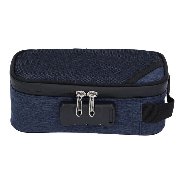 Smell Proof Case, Activated Carbon Fabric Smell Proof Box Lockable Box Bag Travel Storage Case for Cash Passports Wallet (Dark Blue)
